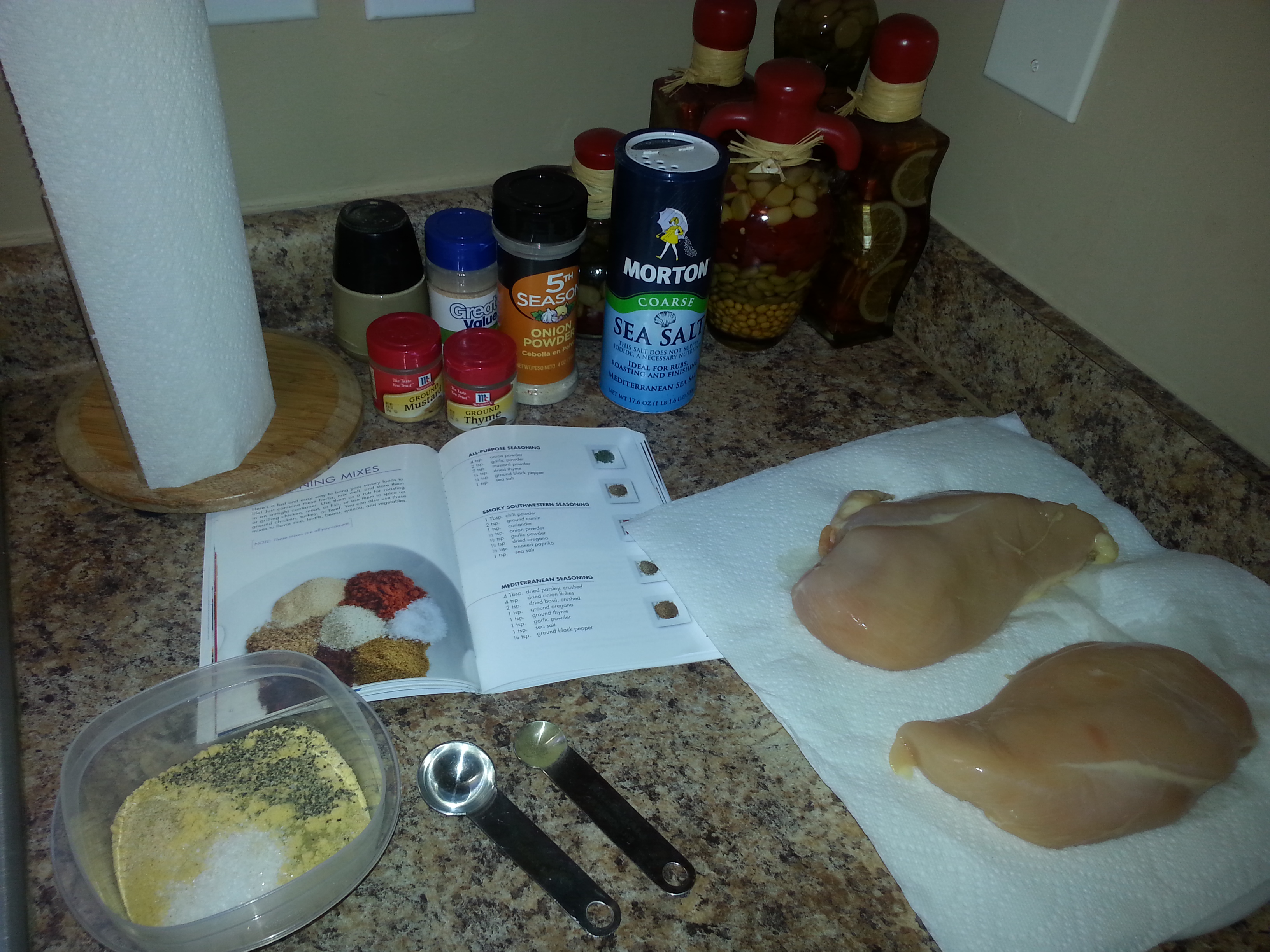 I am currently doing the 21 Day Fix. In the 21 Day Fix eating plan there is a great recipe for an all-purpose seasoning. An all-purpose seasoning means you can use it on whatever you would like. We cook a lot of chicken breasts so this is what I tried it on first.