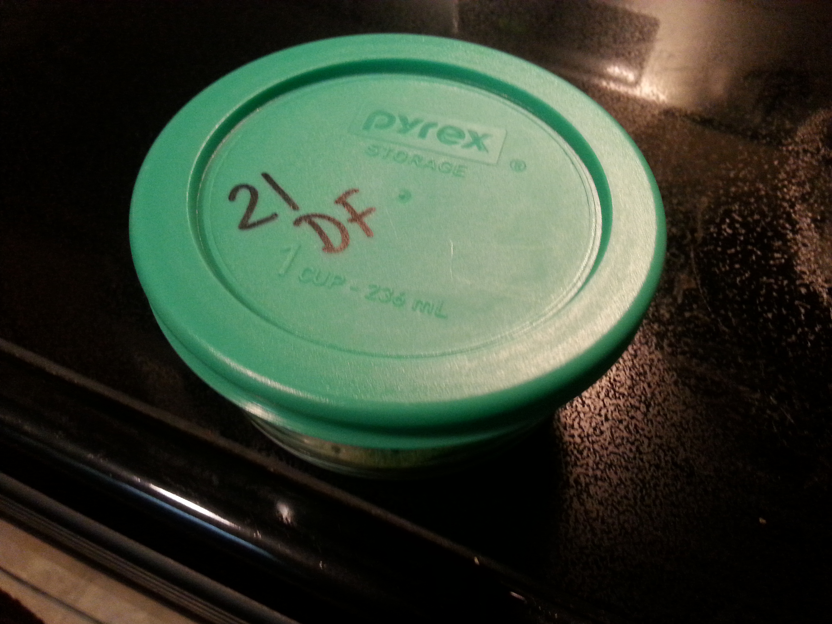 I measured out each seasoning and put into a small plastic Tupperware container. After I was done, I then moved it to a Pyrex glass container and wrote 21DF for 21 Day Fix, on the lid in permanent marker.
